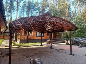Стоимость данного навеса под ключ: 381 700 рублей